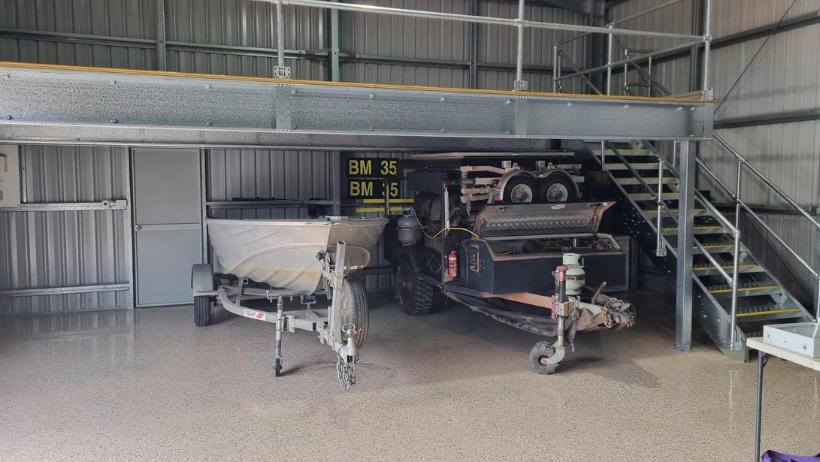 mezzanine floor installed on a steel shed